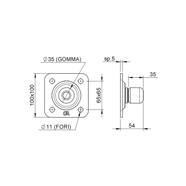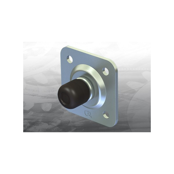 Boční doraz s přírubovou deskou na přišroubování, s tlumící gumou, pro pojezdové brány, pozinkovaný.