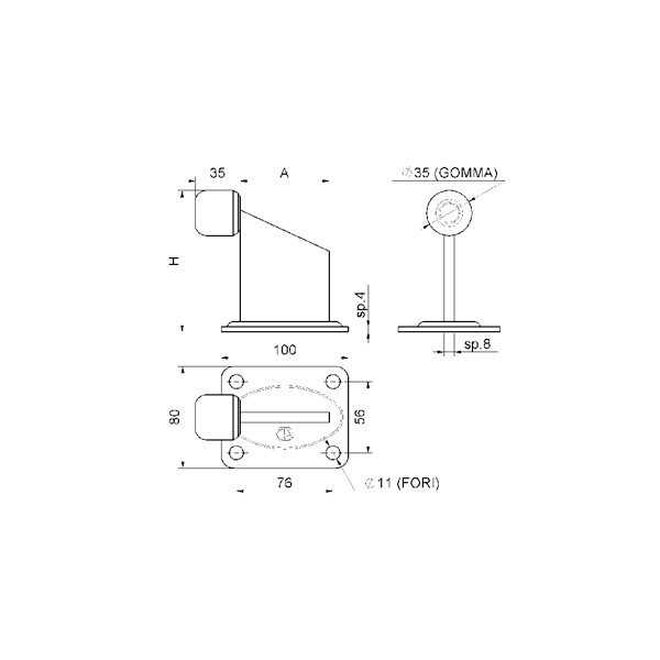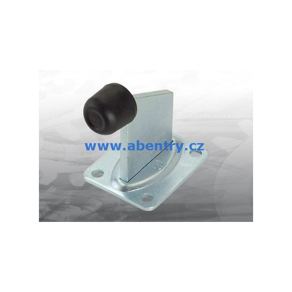 Velký koncový boční doraz s přírubovou deskou pro přišroubování, s tlumící gumou, pozinkovaný.