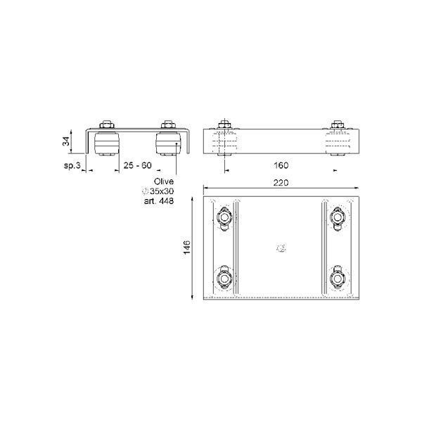 pro horní vedení pojezdové brány o tloušťce 25 až 60mm.
