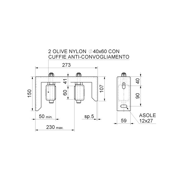 Pozinkované kovové horní vedení (konzole) s úchytem a se dvěma krytými nastavitelnými nylonovými rolnami