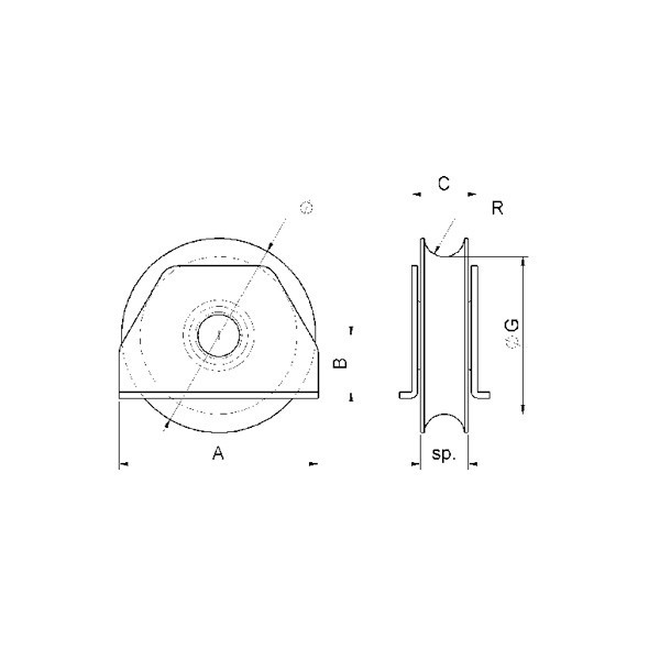 O kladka s jedním ložiskem a opěrnou konzolí, průměr kladky 80mm.Rozměry viz. obrázek.