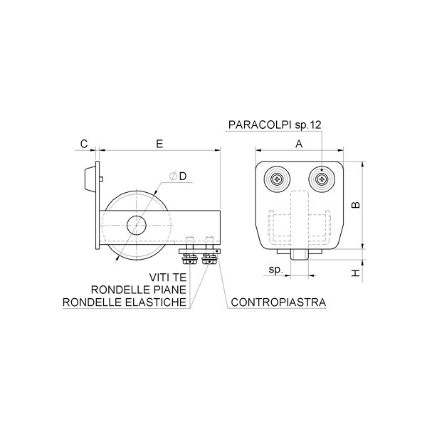 NÁZEV | A | B | C | ØD | E | H | Sp | Viti | Protipodložka | Guma | C profil | | |||||||||
