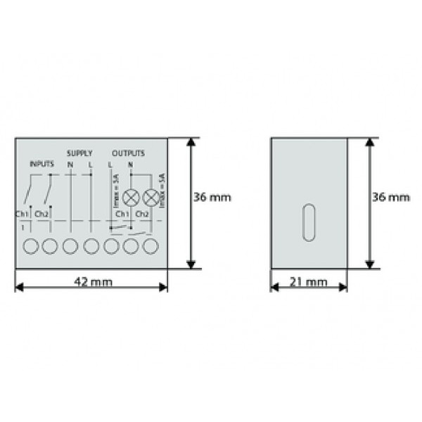 externí 230V přijímač,dvoukanálový (2 relé)Externí 230V univerzální přijímač dvoukanálový (2 relé).