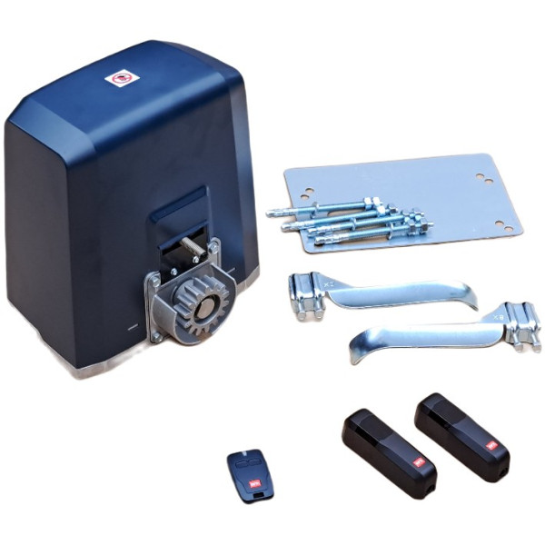 elektronickou regulací otáček a ochranou proti sevření, vestavěnou ústřednu s přijímačem dálkových ovladačů1× MITTO C2 dálkový ovladač1× COMPACTA A20-180 bezpečnostní fotobuňky s možností otočení až o 180°Nízkovoltážní pohon 230V/24V pro posuvnou bránu o hmotnosti do 400kg.