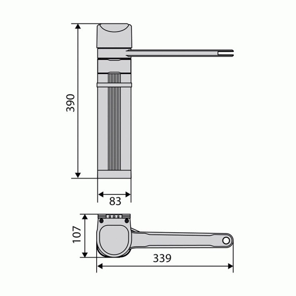 pohon 24V pro otočné křídlovrat do 1.8m/100kgPákový nízkovoltážní nesamosvorný pohon 24V DC,pro otočné křídlo vrat.Doporučené ovládání řídící jednotkou THALIA (THALIA P).• maximální šířka křídla vrat je 1.8m při hmotnosti křídla do 100kg,• maximální úhel otevření je 130°• čas otevření je cca. 14s