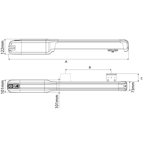 • možnost připojení fotobuněk s bezpečnostním okruhem (V-Safe), nebo blikacích fotobuněk
