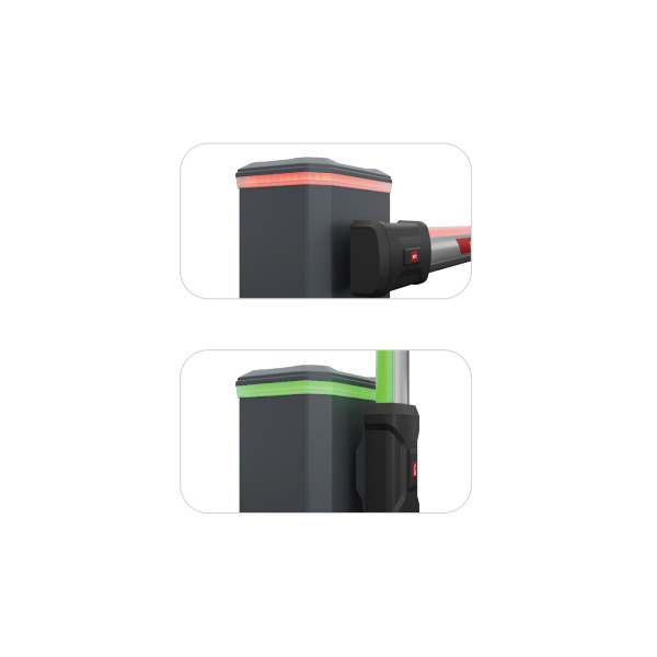 Semaforový světelný LED pás (kroužek) kolem horní části závory GIOTTO BT B ULTRA 36. Svítí zeleně, nebo červeně podle stavu závory.
