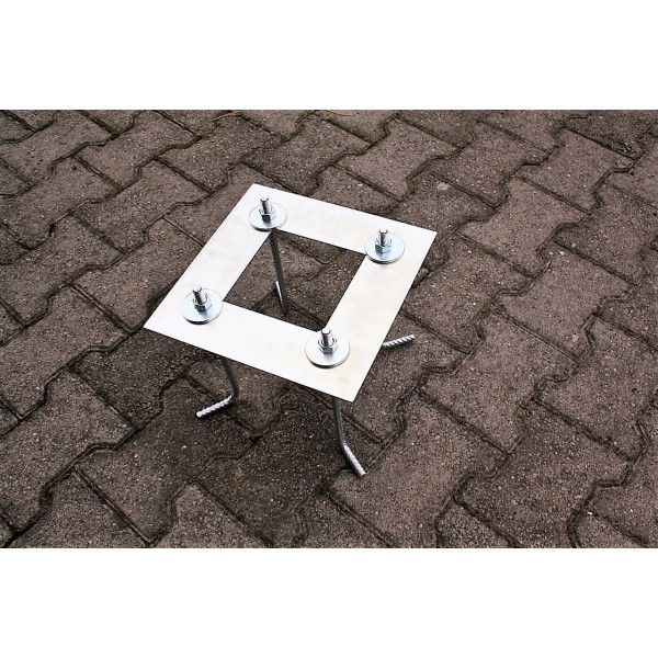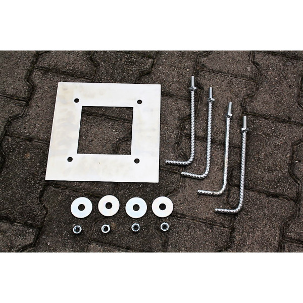Kotvící sada do betonu pro vjezdový skříňový sloupek AB SL6.Rozměry desky: (mm) 270(š)×270(v).4× háky do betonu se závitem pro montáž desky.