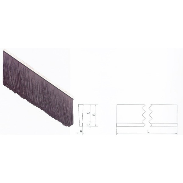 Zobrazit v plné velikosti těsnící kartáč 45mm, délka 1mTěsnící kartáč 45mm, délka 1m.Používá se pro utěsnění vrat před větrem, listím, prachem, apod.| NÁZEV | B | A | C | E | L | Lišta | ||