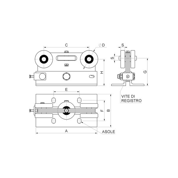 NÁZEV | A | B | C | ØD | E | F | G | H | S | Asole | Viti | C profil | Vozík v C profilu | Pro průjezd max. | |||||||