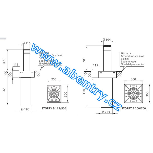 elektromechanickýocelový výsuvný patníkElektromechanický 230V ocelový výsuvný patník, vysouvá se ze země (doporučené ovládáníídící jednotkou PERSEO CBE 230.P).