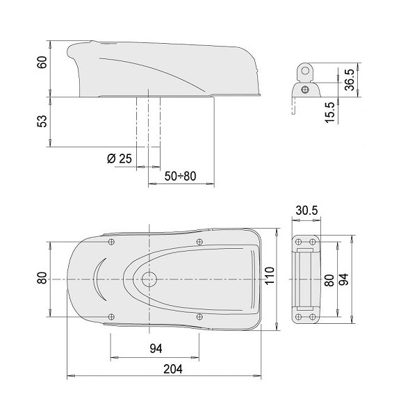 Zámek je určen pro vodorovnou montáž. Připevní se např. ke prostřední