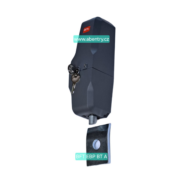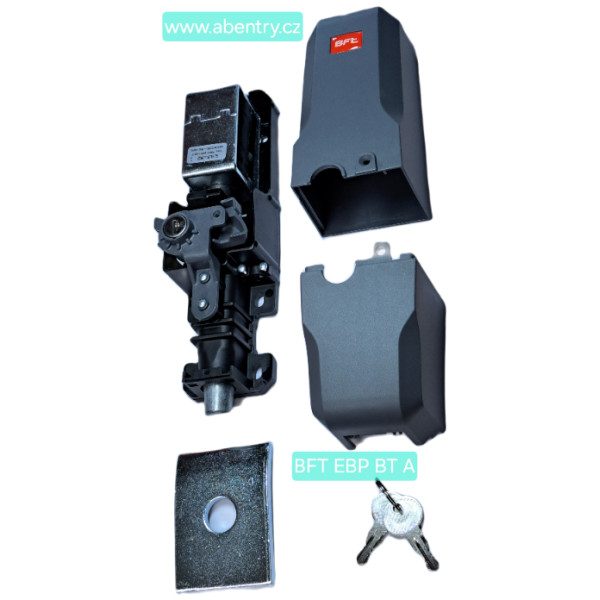 části křídla vrat. Při zavírání vrat najede zkosená hrana kulatiny zámku na protikus připevněný v zemi (protikus je součástí balení) a zapadne samotíží do jeho otvoru. Při otevírání vrat musí být nejprve přivedeno napětí na elektromagnet tohoto zámku, ten si přitáhne nahoru z otvoru kulatinu po předem navolenou dobu a pohon vrata otevře.