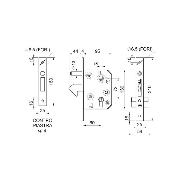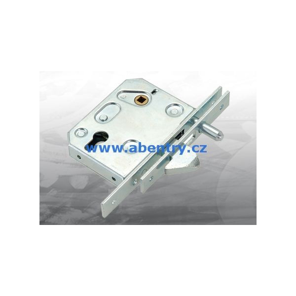 Zámek hákový 60mm pro zapuštění do pojezdové brány, bez cylindrické vložky.Bezpečnostní trn proti přizvednutí brány.