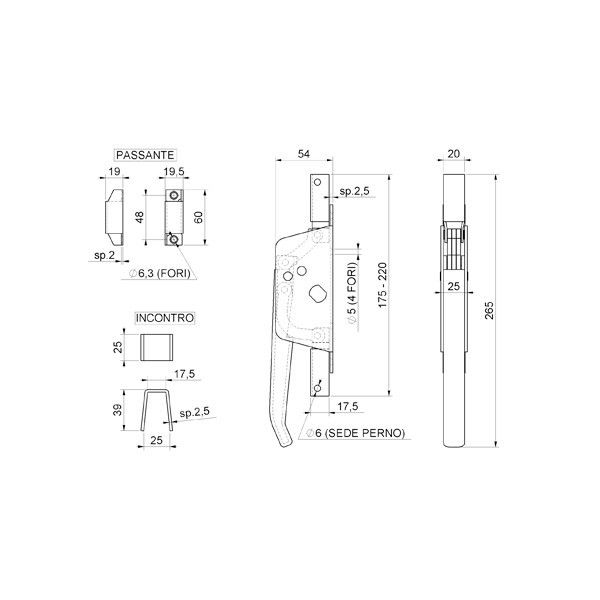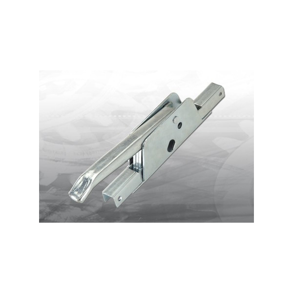 Baskule, pákový uzavírací systém pro vrata, pozinkovaný, pro tyč 14×14mm (HZ 73).Sytém funguje tak, že pákový mechanismus rozevře dvě tyče do stropu a do země